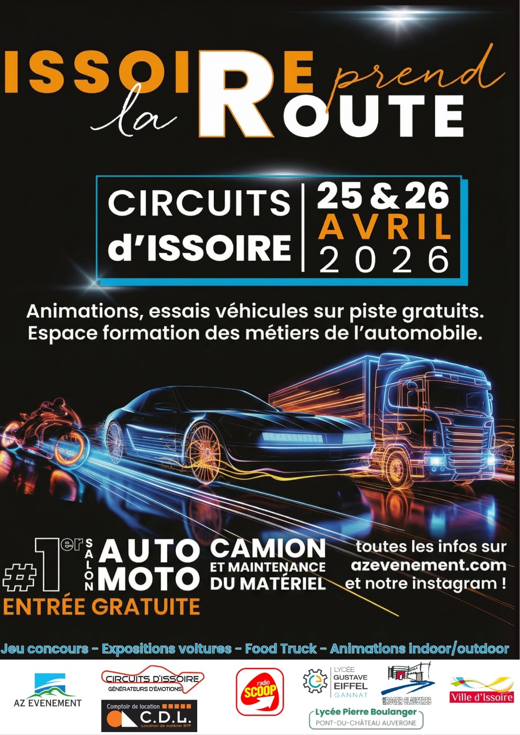 Venez nombreux au 1er salon auto, moto, camion et maintenance du matériel aux circuits d’Issoire les 25 et 26 avril 2026.